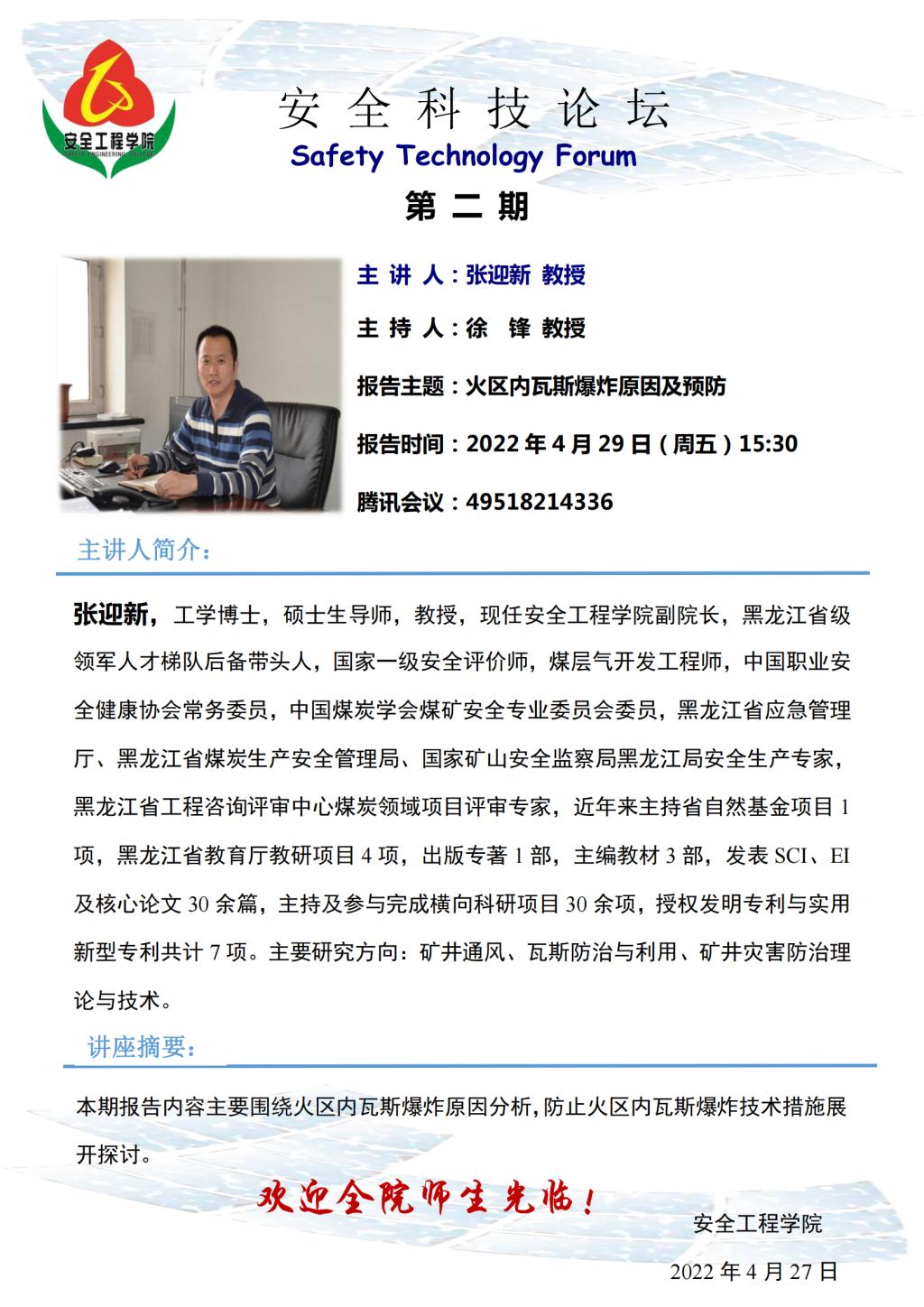 安全科技论坛第二期 主讲人 张迎新教授