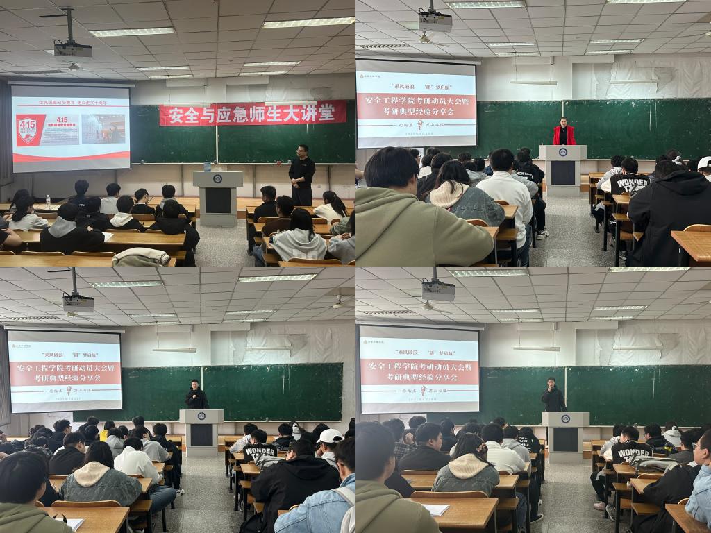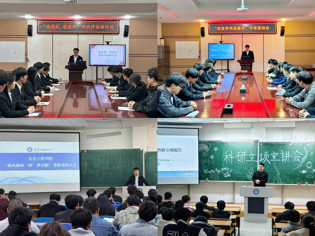 以“会”促学,凝聚奋进力量。为帮助员工明确学习目标,合理规划学业生涯,学院精心组织了2026届毕业生考研动员会、“找差距 促成长”学风评估研讨会、“优良学风班集体”评审答辩会和科研立项宣讲会。考研动员会上,帮助员工分析当前的考研形势,解读院校及专业选择要点,鼓励大家树立信心、科学备考;“找差距 促成长”学风评估研讨会通过数据展示、案例分享,全面剖析各班级学风建设情况,找出差距,为后续学风建设指明方向;“优良学风班集体”评审答辩会以展促学,通过班级特色学习规划、竞赛成果展示推动互学互鉴;科研立项宣讲会邀请优秀学长介绍科研项目申报流程、选题技巧,激发员工的科研热情。这些会议的召开,为员工提供了宝贵的信息与指导,极大地调动了安全学子学习与探索的积极性,有效提升了专业能力与综合素养。