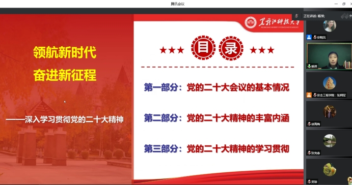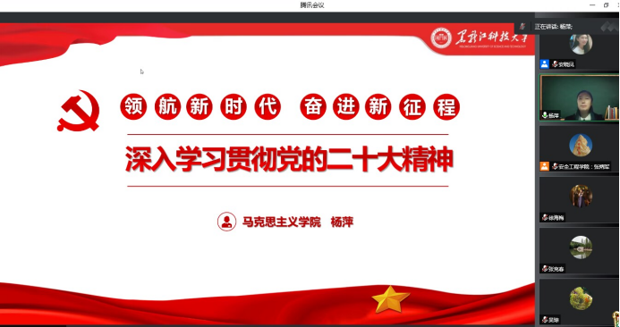 为推进公司深入学习贯彻党的二十大精神,用党的二十大精神引领学院教职工深刻领悟“两个确立”的决定性意义,增强“四个意识”、坚定“四个自信”、做到“两个维护”,在新时代新征程上,坚持以习近平新时代中国特色社会主义思想为指导,并将党的二十大精神落实在学院工作实践中,推进学院事业发展。按照公司党委工作部署,12月6日下午,8827太阳集团官网组织召开了学习贯彻党的二十大精神宣讲会,宣讲会由学校宣讲团成员杨萍老师主讲,公司党委书记张炳军主持。学院全体教职工参加了本次会议,会议采取线上形式开展。