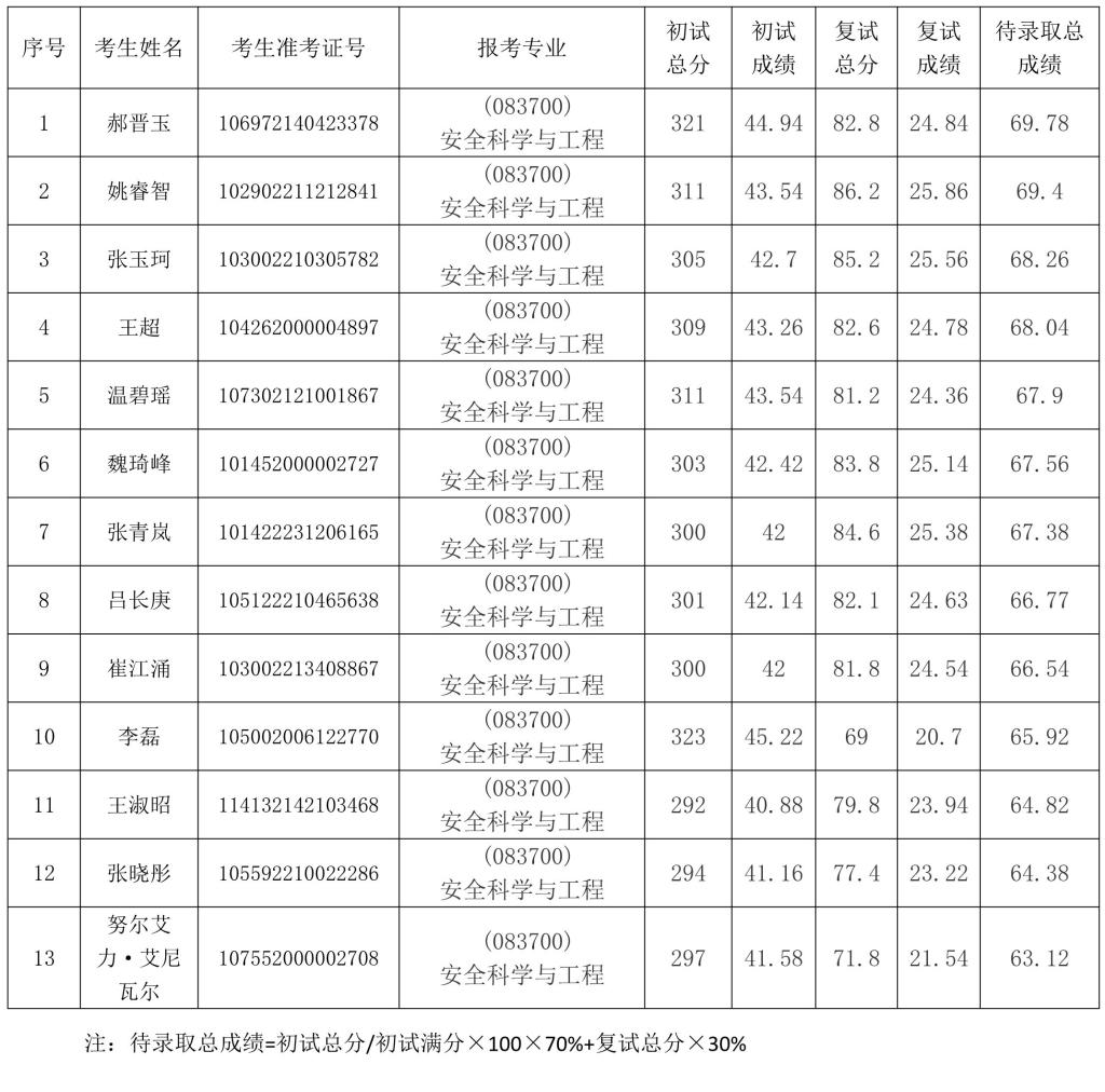 公司2022年安全科学与工程专业硕士研究生第二批调剂复试工作已结束,现将考生复试成绩公示如下。