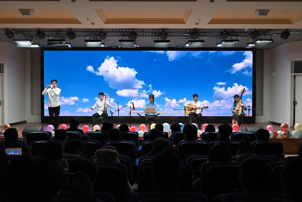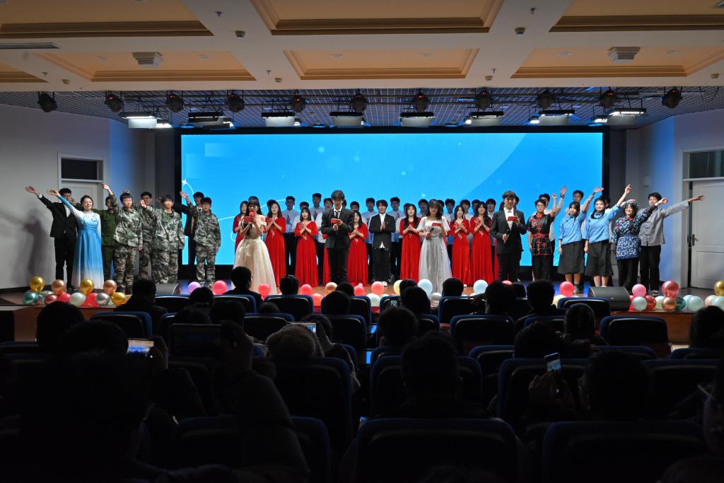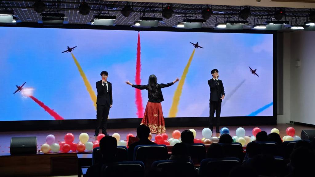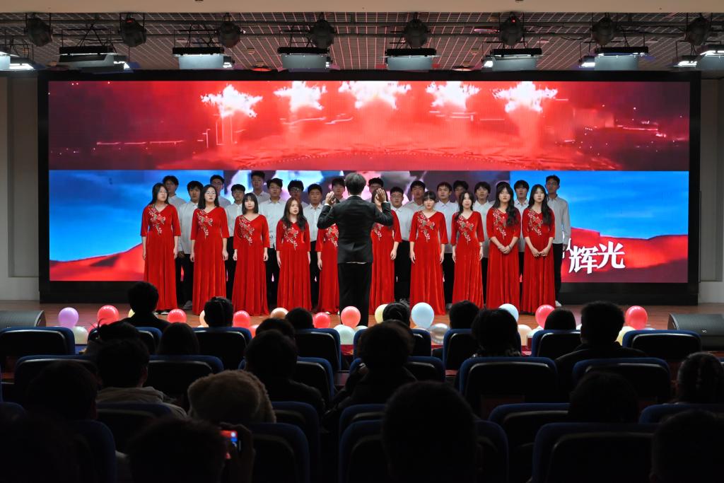 挺膺青春,砥砺奋进启新程。在第三篇章“挺膺青春,再启新程”中,《歌曲串烧》将热情与活力在此刻尽情释放,点燃全场观众的激情;歌曲与独舞《看得最远的地方》,激励着青年敢想敢为,激发无限潜能,挺膺担当;合唱《有我》,展现出中国青年心怀梦想,用热血铸就青春中国,向着壮丽远景奋勇前行;合唱《歌声与微笑》为此次汇演画上完美句号,奏响热爱祖国的美丽华章,尽显爱国盛景,引领青年学子开启新征程。
