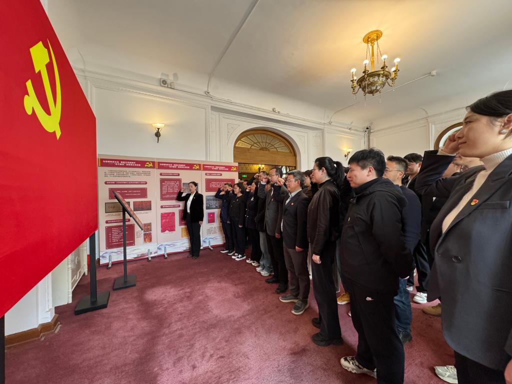 纪念馆内,在讲解员的讲解下,党员们怀着无比崇敬的心情依次参观了三大主题展厅,透过珍贵文物、影像资料及手稿,党员们重温了党的光辉历程,现场接受了党的纪律教育,深切感受到革命领袖们艰苦奋斗的革命精神和求真务实的工作作风。参观结束后,全体党员齐聚庄严肃穆的宣誓厅,在公司党委书记王娟的领誓下,面对鲜红党旗,全体党员高举右拳,重温入党誓词,铿锵的誓言在展厅内回荡。