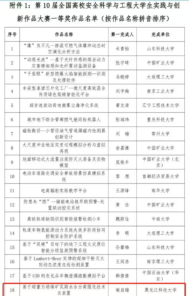 公司在第10届全国高校安全科学与工程老员工实践与创新作品大赛中取得佳绩