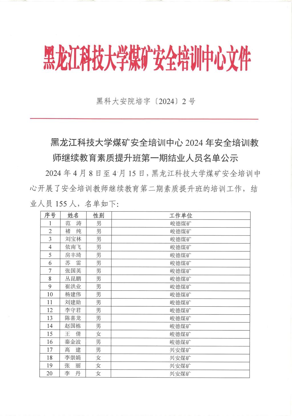 2024年安全培训教师继续教育素质提升班第一期结业人员名单公示