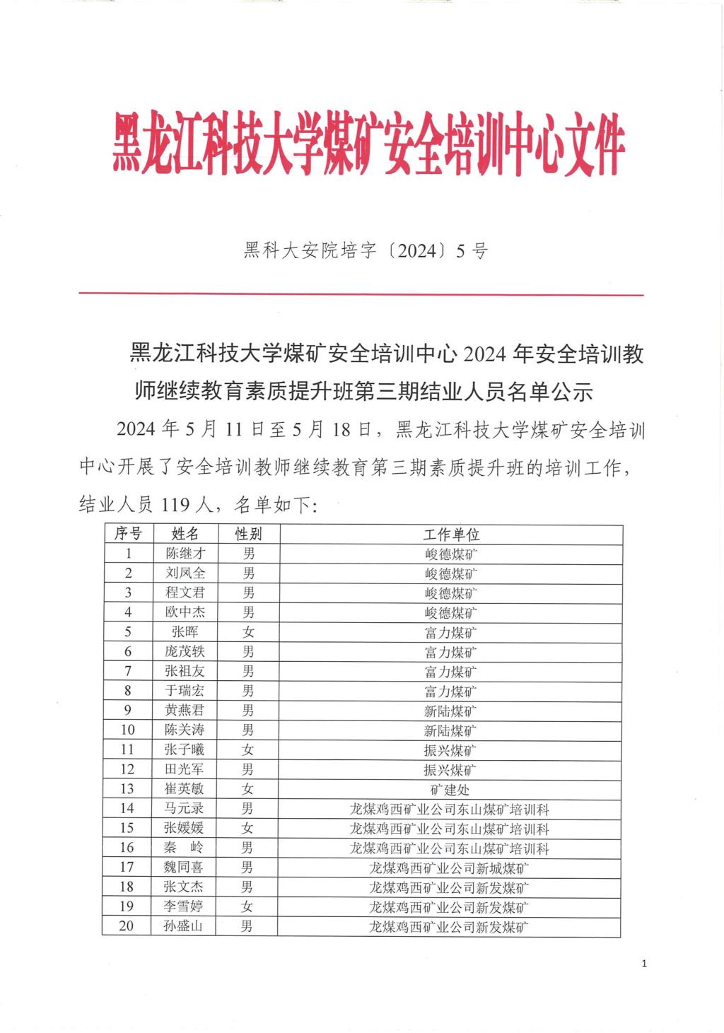2024年第三期安全培训教师复训班结业人员名单公示