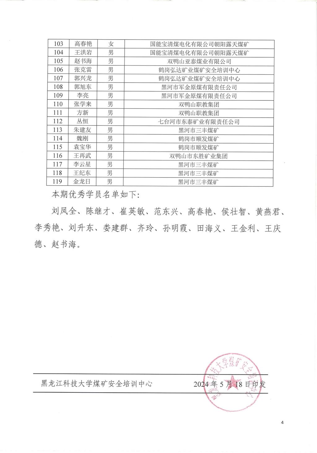 2024年鸡西安全培训教师继续教育素质提升班第四(1)期结业人员名单公示